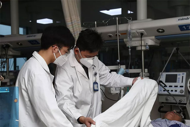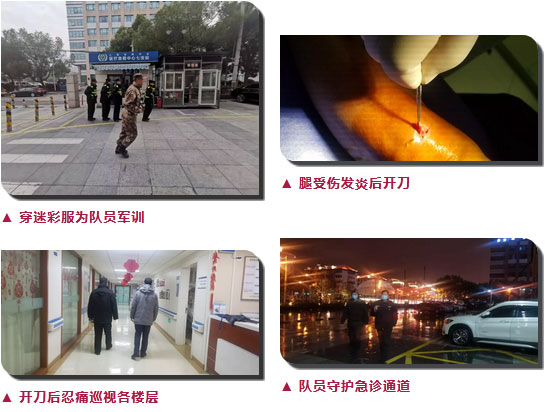 在这里,还有一位比较特殊的人物,他就是上海蓝十字脑科医院消防组组长兼教官陈伟智,今年58岁。春节期间,他负伤带队巡查着整幢大楼的消防安全,无怨无悔。陈伟智带领的安保团队,是医院总务科最繁重的部门。这次疫情紧急,他原本可以休养在家,可是他却负伤站在了第一线上,他的部下也不负众望,坚守着医院第一道“防线”,登记、谢绝探访,做好解释工作等。