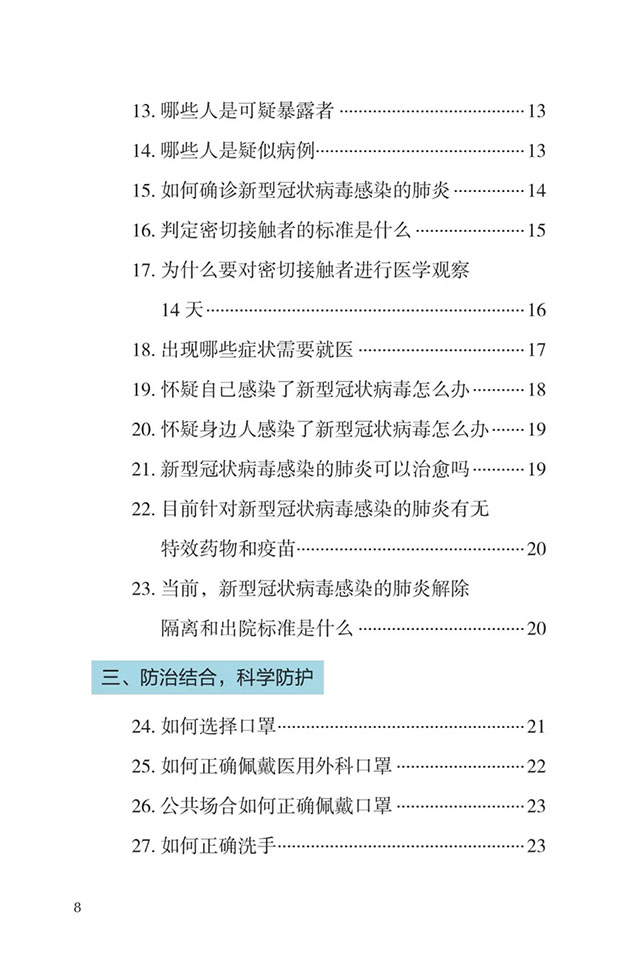 此书聚焦公众个人与家庭防护、居家医学观察、理性就医、心理疏导等防治细节,通过问答形式解读新型冠状病毒感染的肺炎有关问题疑惑,引导公众正确认识,积极做到防治结合、科学防护、消除恐慌、理性应对。此书包括图书、电子书、网络版读物等多种形式,第一批图书已紧急送往武汉抗击疫情第一线,电子书、网络版读物在学习强国、健康中国、人卫健康、掌阅等多个网络平台、微信公众号公益传播,并为全国各地提供可印制的PDF版本。