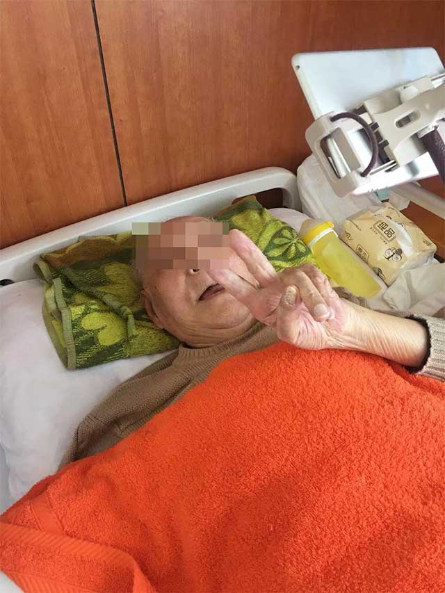 这是元宵节,发生在上海蓝十字脑科医院9楼ICU 病患老人通过护工的手机微信视频聊天功能现场与家属实时线上沟通的情景。