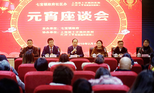 乙亥年元宵佳节上午,由上海市闵行区七宝镇镇政府主办、上海蓝十字脑科医院协办的元宵座谈会在医院多功能会议厅举行。七宝镇镇政府社区办副主任赵美红、社事办卫计办负责人诸忠德、健康教育条线负责人陆鲍君,上海蓝十字脑科医院总经理兼党支部书记朱敏、院长项耀钧、副总经理兼工会主席吴春芳及各社区居委会健康教育条线代表等70余人齐聚一堂,共庆佳节,为建设幸福健康的七宝建言献策、凝聚共识、汇聚力量。