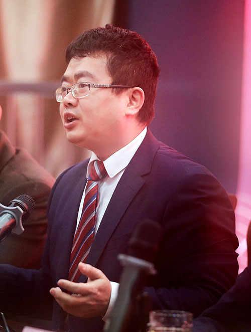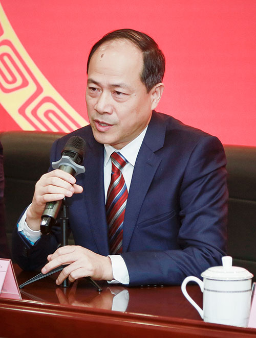 ▲院长项耀钧介绍医院情况及今后发展方向