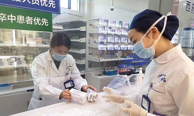 在这场防控疫情阻击战期间,在上海蓝十字脑科医院,都能看到门、急诊和客服部的工作人员穿梭于专家诊室、收费室、药房,为来院的居民代配药。