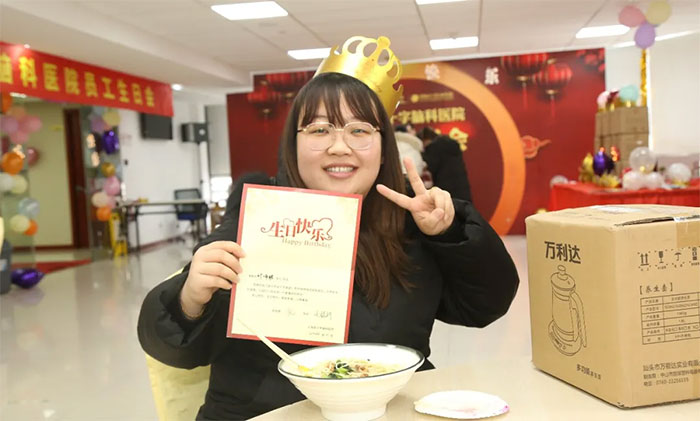 药械科档案管理员周群香满脸笑容地说:“特别特别开心!医院给每位员工过生日,说明院领导是实实在在想着每位员工的,这便是最快乐、最幸福的事。”