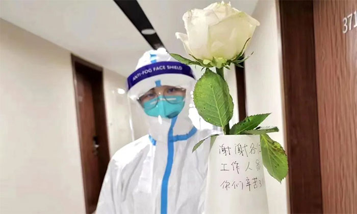 无论疫情的哪个阶段,蓝十字人都“疫”无反顾、挺膺担当,全力以赴担负起医者应该尽的责任和使命。蓝十字人不仅获得了政府的认可,还赢得了群众的好评。“谢谢工作人员,你们辛苦了”的纸杯花、“最美逆行者”简笔画、满是鼓劲与祝福的大白服和联名感谢信等,每一份“特别”的礼物,都是蓝十字人“爱”的见证。