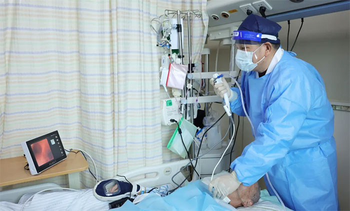 ▲ 张泽明教授开展支气管肺泡灌洗术