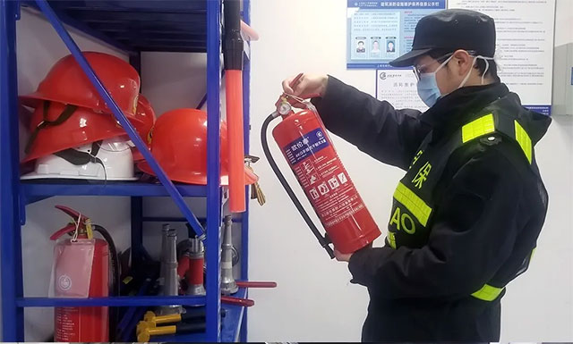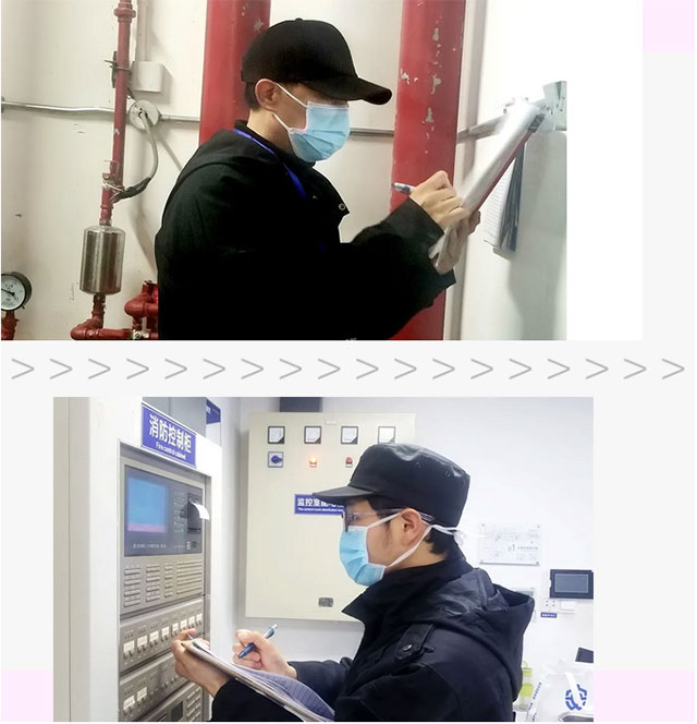 ▲ 疫情期间,消防站安保队员在行动,24小时全面检测、监控水泵房,消控主机柜等消防设备设施。