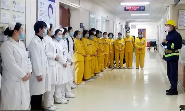 ▲ 防疫期间,在医院神经内科3B病区对医护人员进行消防设施设备培训