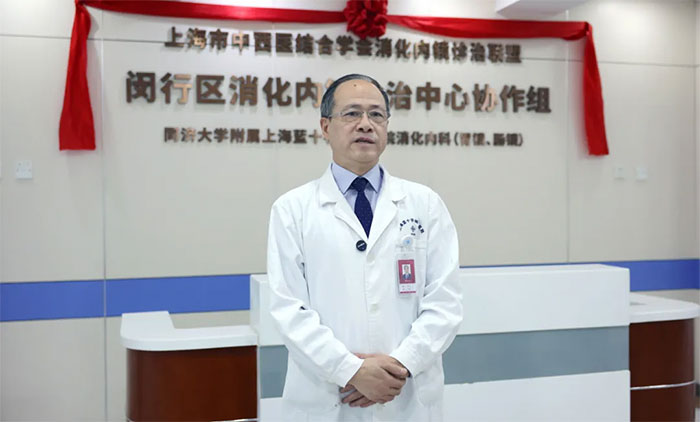 下午4点半,开科暨揭牌仪式在医院二楼消化内科举行。上海市中西医结合学会消化道静脉曲张专委会主任委员,上海市医学会食管和胃静脉曲张治疗专委会副主任委员,上海市中西医结合学会消化内镜诊治联盟负责人,上海市医学会消化内镜专委会委员,上海市中西医结合学会消化内镜专委会常务委员、基层医院学组组长,闵行区消化与内镜专委会主任委员、质控专家组组长冯莉教授特邀出席,与医院书记朱敏、院长项耀钧等院领导班子全体成员,行政职能科室代表以及消化内科全体人员一起,共同见证了这一里程碑时刻。仪式由副院长潘耀良主持。