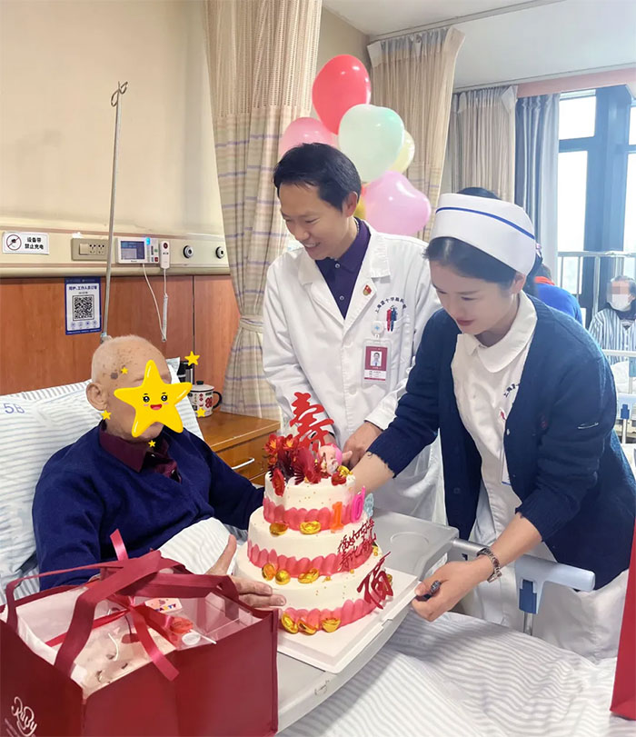那些深夜查房时掖好的被角、晨间护理中反复调整的枕头高度,此刻都凝结成蛋糕上的祝愿。白衣天使的关怀,不仅治愈病痛,更在守护岁月长河里的微光。