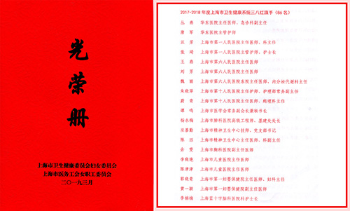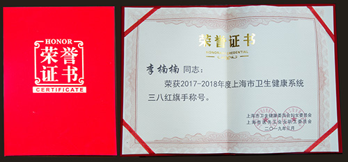 ▲我院7A病区护士长李楠楠是荣获“2017-2018年度上海市卫生健康系统三八红旗手”称号86位妇女中的一位