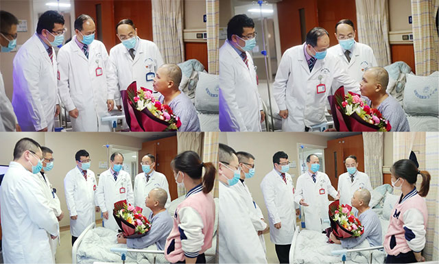 从2020年12月16日“宁波好人”莫钢廷转院至今,在上海蓝十字脑科医院已经住院91天,若加上从12月2日莫钢廷工作时从高处摔落下来正好有105天。这是自3月1日莫钢廷顺利接受颅骨双侧大面积修复手术后,医院高层管理团队再次来看望莫钢廷及始终陪护在旁的妻子冯凰芬。神经外科6B病区主任潘仁龙对小莫说,“尤其是朱敏书记,自始至终都十分关注你的安危和健康呢!”。