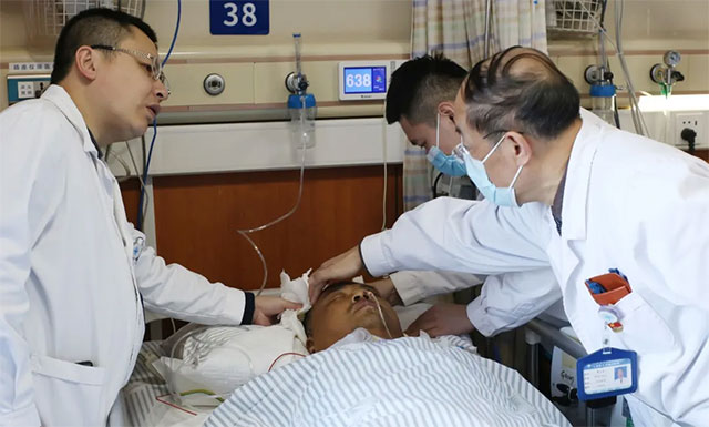 救援队队长沈方德连忙联系到在上海蓝十字脑科医院神经外科6B病区潘仁龙主任,潘主任在问明情况后,给予主治医生连线指导。九天来,潘主任每天电话询问那位队员状况,觉得病人病情危重,遂于12月11日动身坐车赶往宁波去会诊。