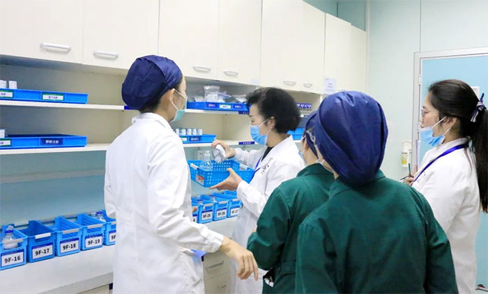 叶文琴副总裁率领护理安全组几乎走遍了神经外科重症监护室、神经内科重症监护8B病区、神经内科7A及4A病区的角角落落,从走廊过道、库房、配餐间、处置室到护士站、病房等,不留死角,重点稽查病区5S管理,并通过随机访谈及文书审阅等方式对医嘱、给药、注射、输液与输血查对落实情况进行细致检查。