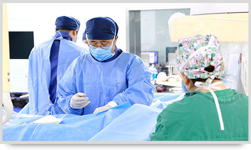 李李主任在聚精会神地进行DSA手术