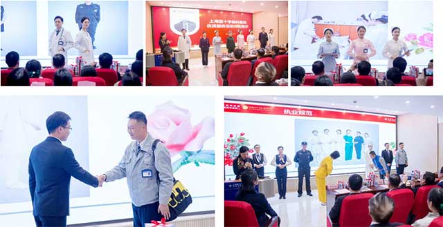 神经外科重症ICU主任李鲁萍作“医生是信徒,信仰生命无价”主题分享,从医48年,面对众多生命垂危的重症患者,她始终怀着对患者的责任心、对生命的敬畏心,把患者的利益作为最高利益,以优质的服务质量确保患者的生命安全。各岗员工礼仪展示,规范的着装、语言、举止,坚定从容、自信温暖的职业形象,呈现出一道靓丽的风景线。