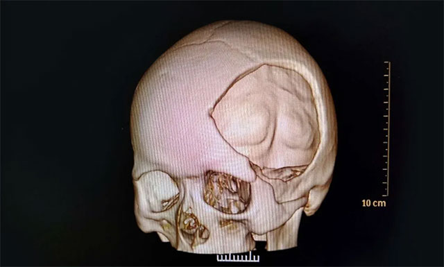 ▲ 来院时,患者颅骨大块缺损