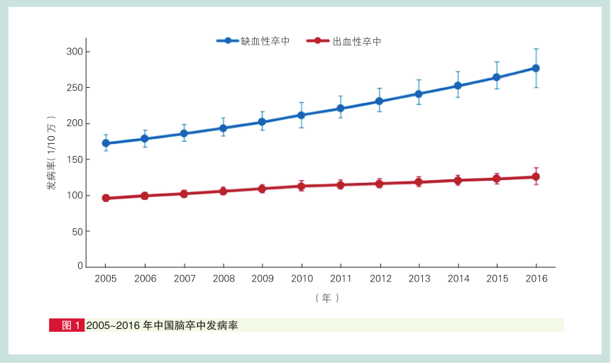 脑卒中(脑中风)是一种急性脑血管疾病,是由于脑部血管突然破裂或因血管阻塞导致血液不能流入大脑而引起脑组织损伤的一种疾病。根据《2017中国卫生和计划生育统计年鉴》和《2018中国卫生健康统计提要》,脑卒中是目前导致我国人口致死致残的首要病因,且发病率和死亡率逐年上升,防控形势可谓非常严峻。