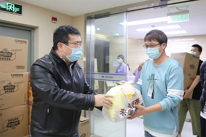 近半个月来,为了预防病毒,提高自身免疫力,医院为一线在岗员工赠送中药汤剂和连花清瘟颗粒;在物资采购紧缺的情况下,医院在副总经理兼工会主席吴春芳的牵头下,紧贴一线需求,克服采购、运输、配送等各方面困难,协同总务科陆续采购零食礼包、牛奶、水果、茶饮等分批次赠送坚守岗位的员工。从点到线、从线到面、从“前线”到“后方”送出的温暖,鼓舞了士气,凝聚了力量,温暖了昼夜奋战在抗疫一线的广大医护人员的心。