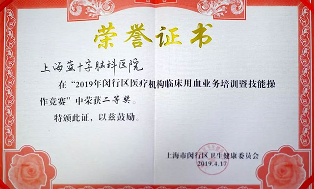 李万静代表蓝十字脑科医院参加了技能操作竞赛,经过宁静而激励角逐,她仅一步之遥与操作技能竞赛第一名擦肩而过。经综合总分评定,蓝十字脑科检验科荣获“首届闵行区医疗机构临床用血业务培训暨技能操作竞赛”二等奖。