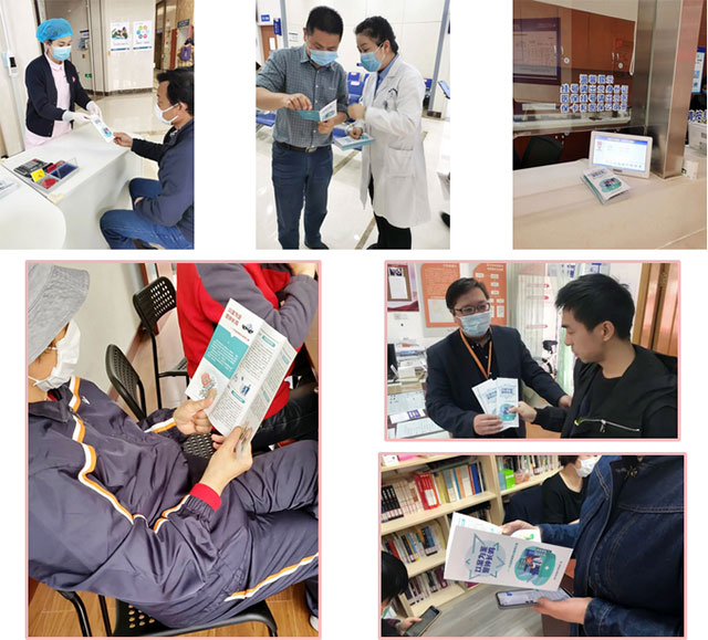 一方面,在导诊、门诊及挂号收费等窗口,向专家、患者及家属发放宣传手册;另一方面组织社工部员工深入社区,与居民拉家常、讲政策,向他们发放宣传手册并对相关内容进行讲解。