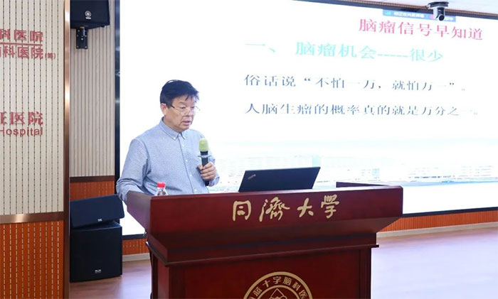 李志强主任结合自己的手术案例,用图文并茂的形式,用诙谐幽默的语言为大家上了生动一课,让大家对脑肿瘤有了更深入认识。他与患者结下的良好友谊,展现了浓浓医患情,更是引起大家共鸣。