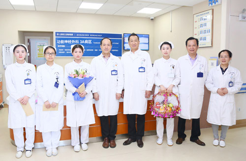 4月25日,院长项耀钧、医务科科长沈广智和护理部主管护师李京纳来到三楼A病区功能神经外科,看望被癫痫伴突发精神综合症患者所伤的四名医护人员,表达医院的关怀和慰问,同时为当事护士送上鲜花、水果和慰问信。