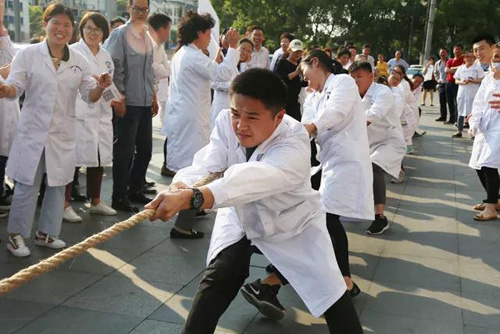 他讲到,本次拔河比赛作为医院文化年活动的一部分,代表了蓝十字脑科医院“诚信、务实、博学、精进”的一种精神。在比赛的过程中,大家展现了青春的风采,展现了团队的力量,展现了蓝十字脑科的独特精神和风貌。拔河比赛不是一个人、两个人能够完成的,而是需要一个团队的协作。这个团队只有齐心协力、目标一致,才能获得最后的胜利。希望大家在今后的工作中继续发扬这种团结协作、勇往直前的必胜精神。