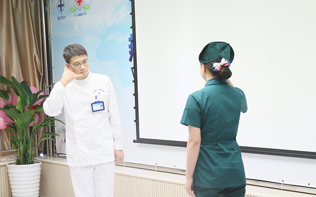 领导致辞完毕,蓝十字脑科护士们给大家献上了一场寓教于乐的礼仪情景剧:从护士的仪容、仪表、站姿、行走等方面,对护士礼仪在临床护理工作中的体现进行了精彩的演绎。