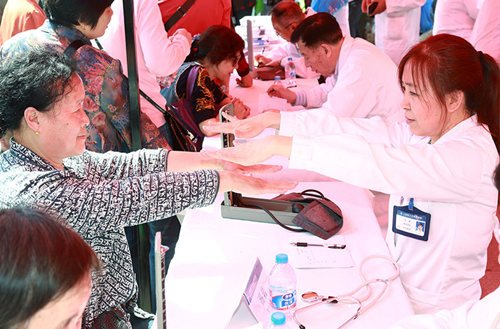 家住附近的梁阿姨,63岁,一直有高血压,并说自己四肢乏力,常年头痛头晕,副主任医师李淑芹为她现场量了血压为176/129mmHg,测试了她的肌张力,建议她到医院作进一步检查。
