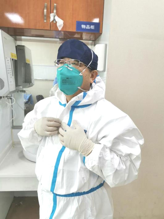 从3月下旬始,李世平主任一直吃住在办公室,每天除了出诊、会诊,带领团队查房、询问病情、确定治疗方案、实施人员隔离,还注重在心理上对患者进行疏导,对患者提出的需求,只要能做到,他总会尽力满足。期间,李世平主任不幸感染。治疗、隔离之际,他从未落下科室防疫和医疗工作:4楼两个病区的医生排班、日报表,指导科室危重患者抢救,协调护士工作,床旁电话对患者、家属和团队情绪进行安抚、每晚医院中层视频会议等,从没真正休息过一天,24小时随时待岗是常态。
