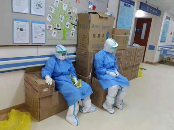 在李世平主任的带领下,团队医护人员也都扛起使命感和责任感。关键时刻,医生李芳、程雪峰和医助凡恪光、吴魏丽挑起了医疗重担,管理两个病区患者,并一起分担科室核酸采样、患者餐食发放、物资搬运、垃圾清运、环境预防性消杀等工作。病区危重患者较多,情况复杂,患者的每一个体征变化都不能放过,他们争分夺秒分析研判,根据不同情况,精准施策。疫情以来,险情频发,经常是通宵达旦抢救患者,他们一直与时间赛跑、与死神较量,期间共抢救患者10余名,不曾休息,黑白班来回倒,个中艰辛,难以言喻。“现在这个阶段就像是在走钢丝,无论是疫情还是危重症的患者。但是我们做医生的,更要努力救治患者。既然选择这个行业,就要勇往直前。”李芳医生说。