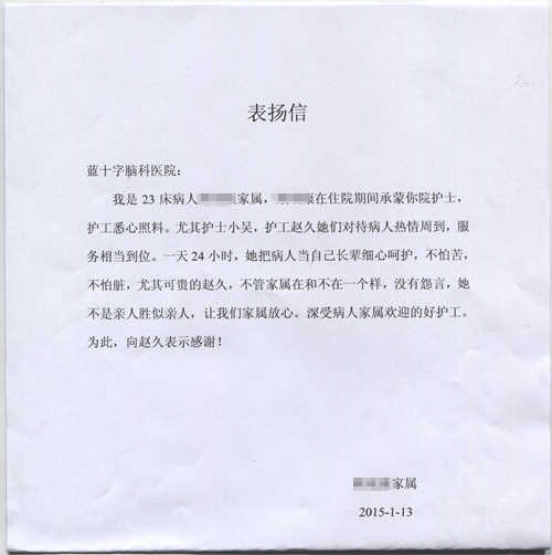 一封一封的感谢信不停地送到医院办公室,其中满怀着病患及家属对于辛勤的护士们的感激之情,这也是上海蓝十字脑科医院护士们应得的荣耀。她们是名符其实的白衣天使,祝她们节日快乐!