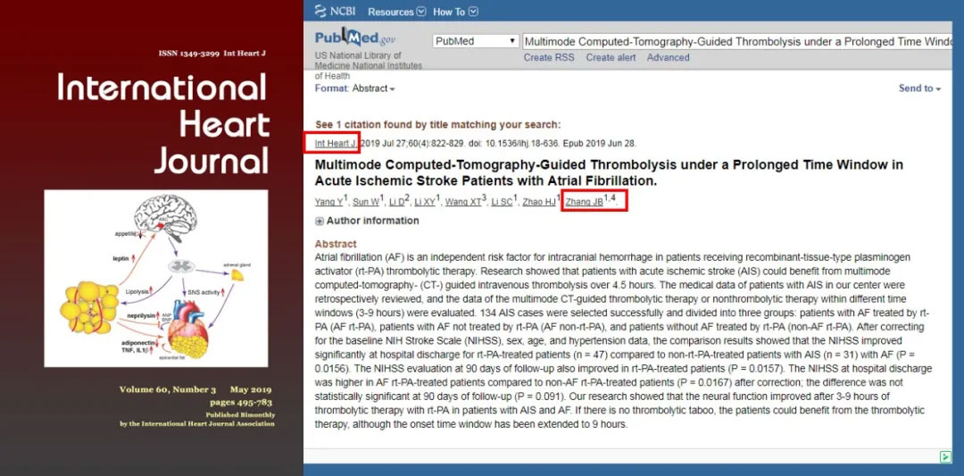 ▲ 张静波主任发表在International Heart Journal《国际心脏杂志》上的论文被SCI收录