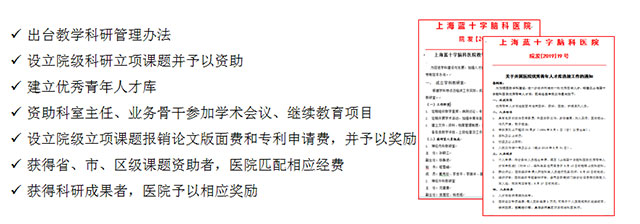 作为以“专家建院、技术立院、创新兴院”为发展方针,致力于创建现代化、国际化、专业化的脑科医院,上海蓝十字脑科医院始终重视学科建设和人才培养,先后设立学科建设专项基金,先后出台教学科研管理办法,设立院级科研立项课题、建立青年人才库等,为人才搭建成长平台,鼓励大家在医学科研领域持续前行、深入探索。