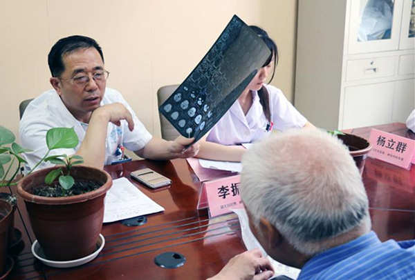 图八:神经内科专家李振并主任为患者解读核磁图