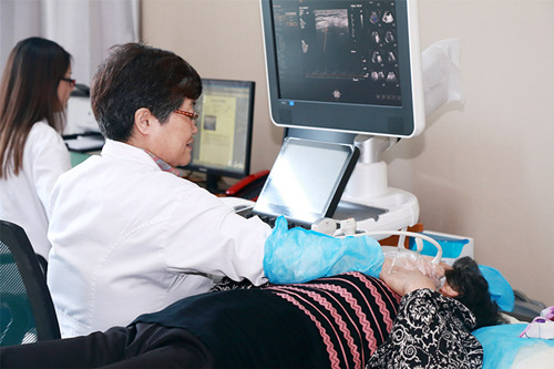 彩超科主任王素英为居民做颈部动脉彩超筛查斑块