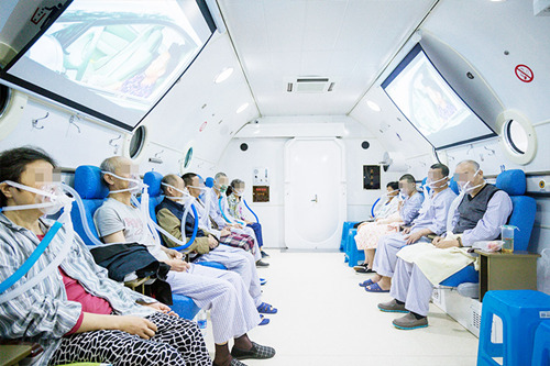 高压氧治疗对于促进脑血管病患者康复有不可替代的作用,患者正在氧舱内接受治疗