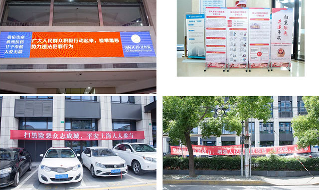 目前,医院充分利用各种媒体和宣传手段,持续开展多种形式的扫黑除恶宣传活动,巩固宣传阵地——院外悬挂“扫黑除恶众志成城 平安上海人人参与”等宣传横幅;院内设置专项行动宣传展板并张贴海报;电子显示屏滚动播放宣传标语;上海蓝十字脑科医院微信工作群实时发布专项行动相关知识......积极营造人人知晓、人人参与的浓厚氛围,全面发动全院干部职工和群众共同参与开展扫黑除恶活动,形成声势,坚决打赢扫黑除恶专项斗争攻坚战,共同营造风清气正、医患和谐的医疗环境,使患者有安全感、获得感,幸福感!