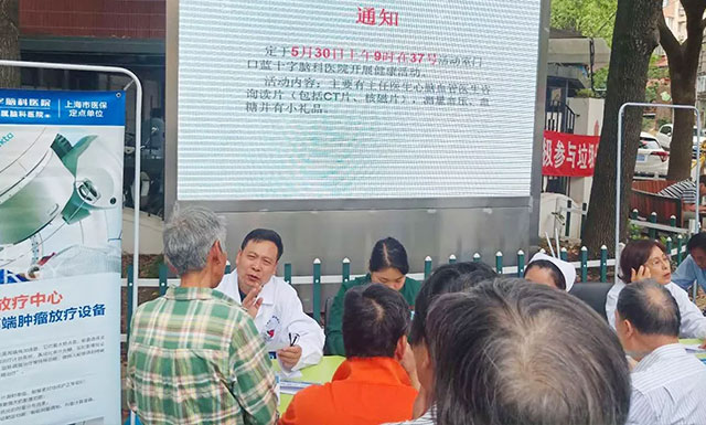 值得一提的是,此次“健康进社区”活动,首次增加了肿瘤科普及放疗咨询项目,将蓝十字脑科医院新近引进的肿瘤放疗技术相关知识,由专家面对面地向居民们进行讲解和沟通。