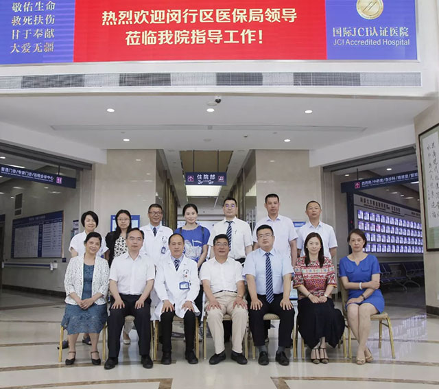 6月12日上午,由闵行区医疗保障局局长张志权、副局长李强、唐铮、基金监督科科长武狄、局办主任孟佳颖组成的调研组莅临上海蓝十字脑科医院调研指导大数据病组分值付费试点工作,医院总经理兼党支部书记朱敏、院长项耀钧等热情陪同接待。