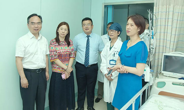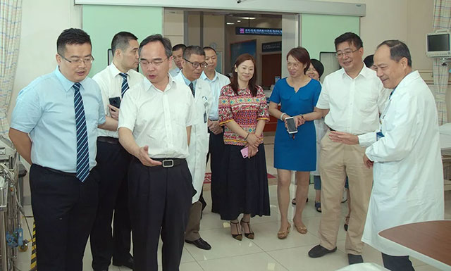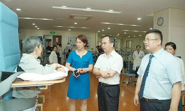 调研组先后参观了门诊大厅、急诊科、神经外科重症监护病区、康复医学科、高压氧科、放疗科、影像科,对医院的特色科室和设施设备作重点了解。在神经外科重症监护病区,当了解到一位年仅15岁的患者,由于心跳呼吸骤停,一度昏迷,病情危重,经过李鲁萍主任的三个多月精心治疗,最终从从植物人状态被成功促醒,调研组给予高度称赞。