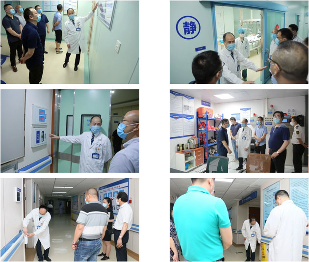 在院长项耀钧、副院长潘耀良、副总经理兼工会主席吴春芳等的陪同下,先后到医院ICU重症监护病区、脑血管病病区、医学影像科、高压氧科、消防通道、消防控制中心等重点区域实地参观,对医院医疗安全、护理安全、行政安全等工作情况重点了解。