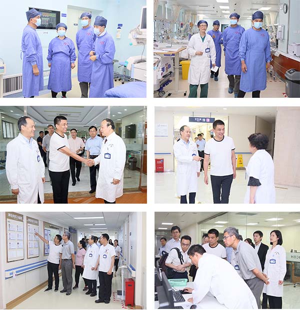 刘永好董事长一行先后实地察看了全数字化Hybrid-OR复合手术室、ICU重症监护病区、普通病区、神经康复医学科以及脑血管介入科、高压氧科、影像科等重点科室,亲切慰问了临床一线的医务人员。