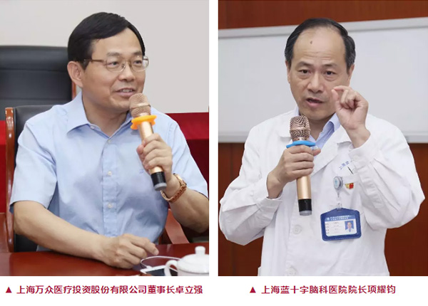 6月13——14日,新希望集团董事长刘永好、中国投资有限责任公司副总经理祁斌率队莅临上海蓝十字脑科医院调研指导并座谈。刘永好董事长对医院的发展与取得的成绩给予了肯定,对医院未来规模化、国际化、连锁化建设寄予殷切期望,并表示新希望集团医疗板块战略布局重心正瞄准脑科高端医疗。上海万众医疗投资股份有限公司董事长卓立强、常务副总裁刘诗强、副总裁黄晓梅,上海蓝十字脑科医院总经理兼党支部书记朱敏、院长项耀钧等接待陪同。