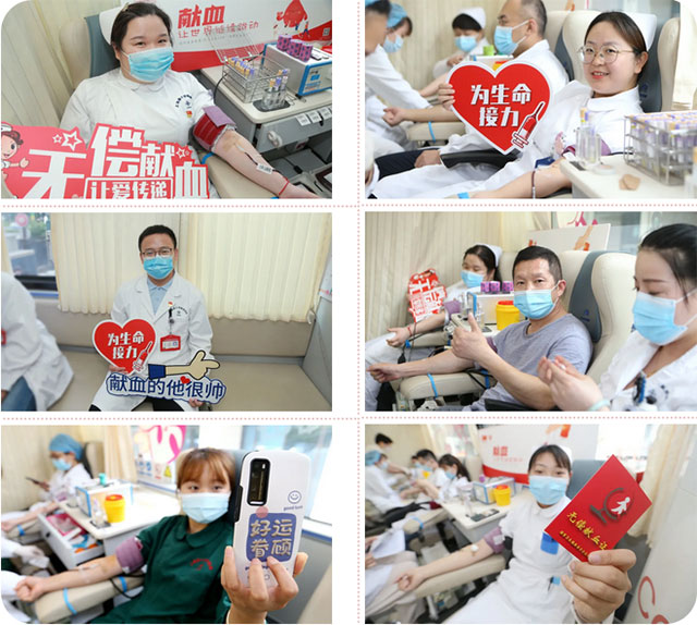 献血现场传递着爱心,也流淌着温暖与感动。献血队伍中,有党员干部、有临床一线医务人员、有行政后勤人员;有多次无偿献血的“老将”、有初次上阵的“新兵”;有刚忙完临床工作抽空来的、有倒休特意从家里赶过来的......