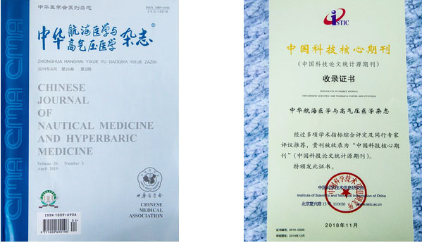 ▲ 中华系列杂志、国家科技核心期刊《中国航海医学与高气压医学杂志》