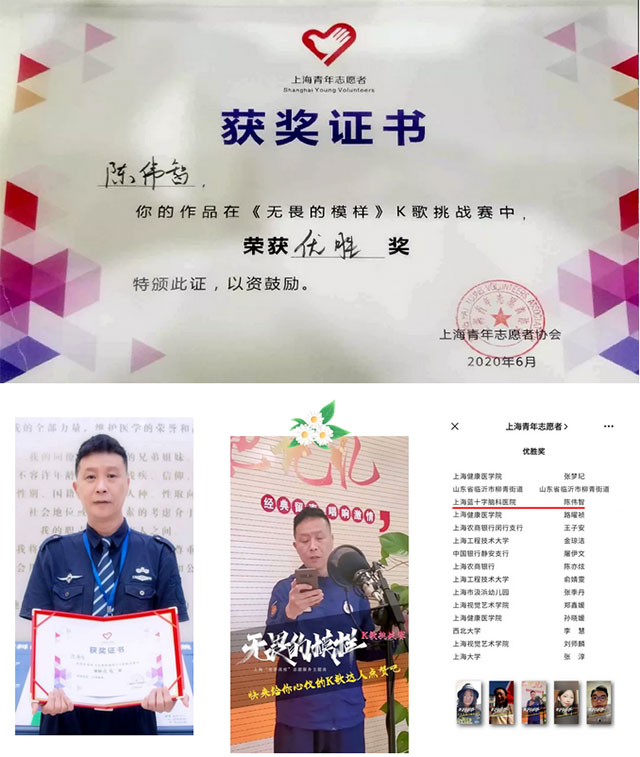 近日,由上海市共青团市委和上海青年志愿者协会联合举办的上海“青春战疫”志愿服务主题曲《无畏的模样》挑战赛获奖者名单揭晓。上海蓝十字脑科医院总务科消防站站长陈伟智获优胜奖。