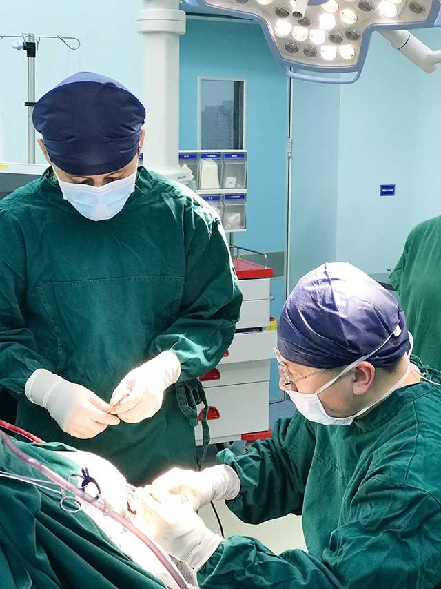 ▲ 正在进行颅内压监测探头置入术的吴治群博士