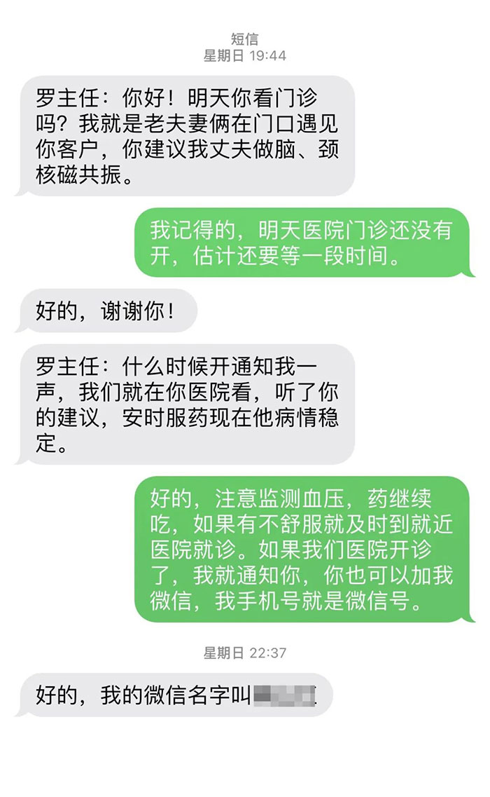 吕阿姨说,一周前丈夫的眩晕犯了,当时就来过医院,可那会医院门诊还没有开放,便有心留了门诊部罗佳主任的联系方式,只望开诊后能第一时间来看诊。