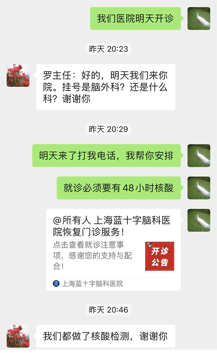 “都10几天了,早就想来了,因为疫情原因一直耽搁到现在。”赵阿姨表示,自己湖北宜昌的姐姐有长期失眠及腿抖的毛病,之前也是余志良主任治疗的,效果很好。所以她从此“看病”只认余主任,去别的地方都不放心。这次,一听到蓝十字脑科医院门诊开诊的消息,她就迫不及待地赶过来了。